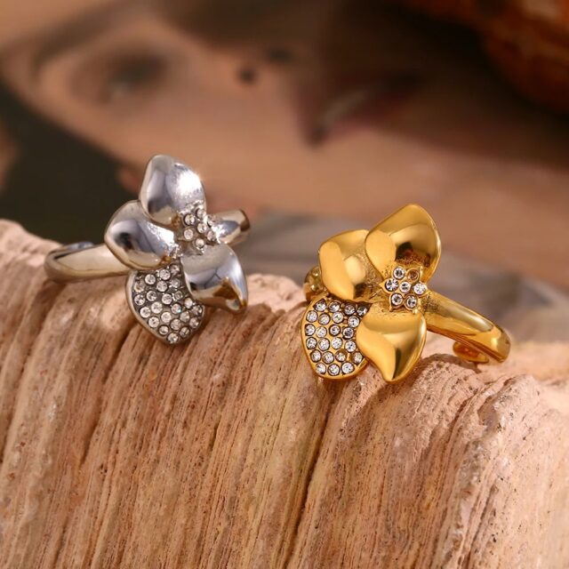 This ring is the perfect accessory for any event that calls for a little extra glamour. It shines at evening parties, adds charm to a casual day out, and serves as a conversation starter during special occasions. The floral design and rhinestone detailing are an excellent choice for those who love modern elegance with a natural twist. Wear it with your favorite dress or even with your go-to jeans to create a look that stands out effortlessly.