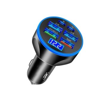 6-Port 100W USB C Car Charger with Voltage Display and Fast Charging