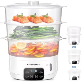 Electric Food Steamer 13.7QT, 3-Tier Digital Steamer 800W with Auto Shut-Off