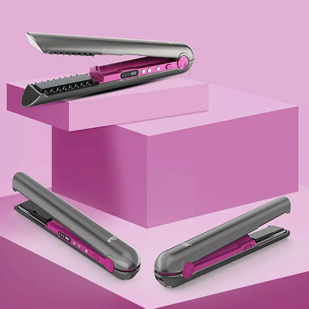 Wireless Mini Hair Straightener & Curler 2-in-1 USB Rechargeable with Charging Base