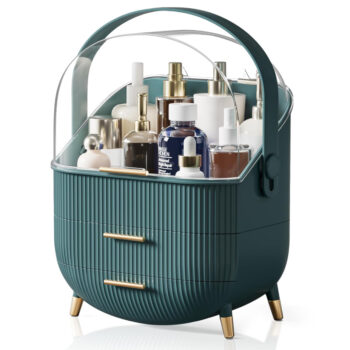 Large Capacity Makeup Organizer Drawer with Cosmetic Storage and Brush Holder