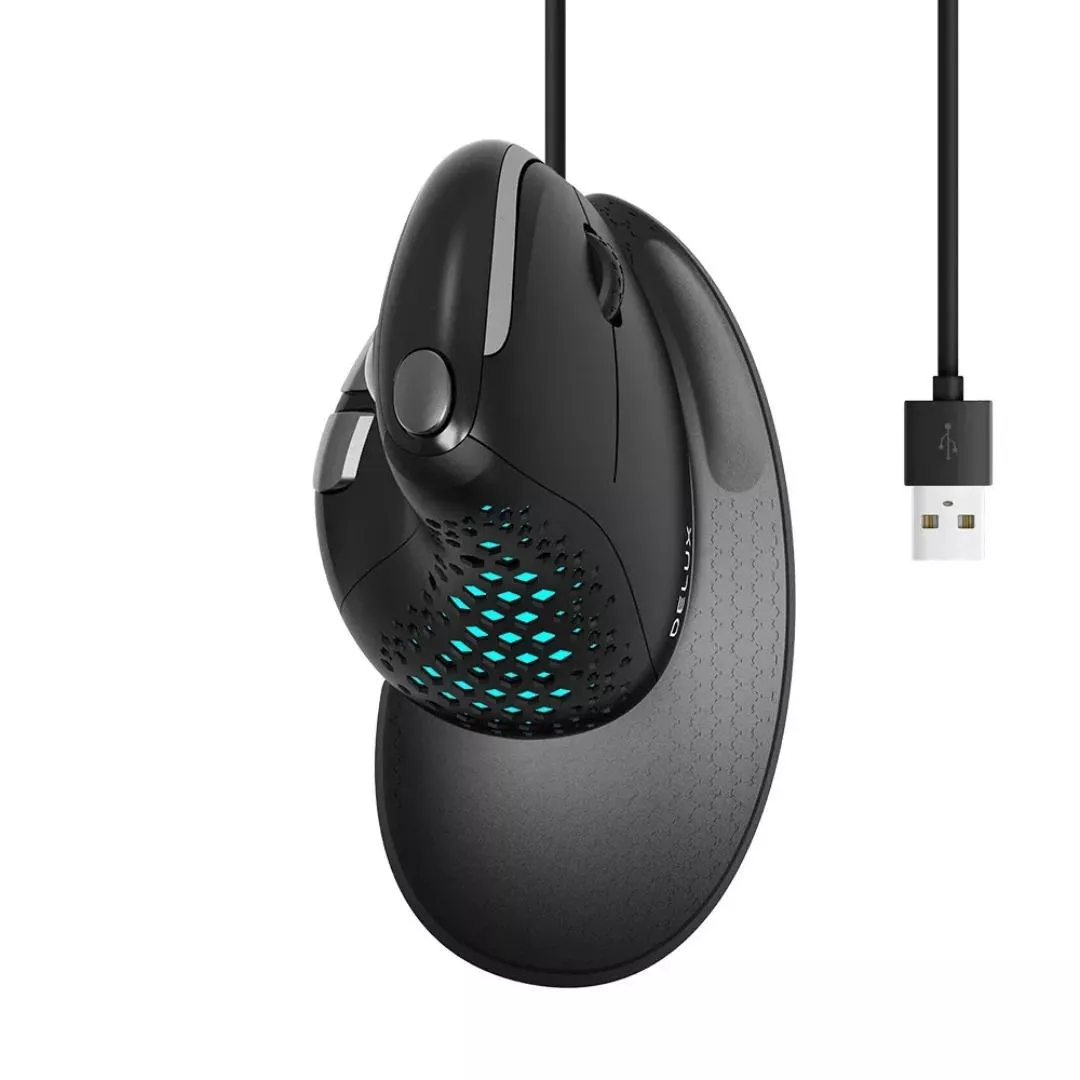 Ergonomic Vertical Wired Gaming Mouse with RGB Lighting and Thumb Wheel