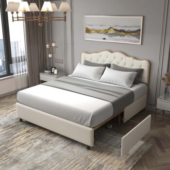 Queen Size LED Upholstered Platform Bed Frame with USB Charging