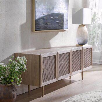 Scandinavian Modern Rattan TV Cabinet – Solid Wood, Multifunctional Living Room Furniture