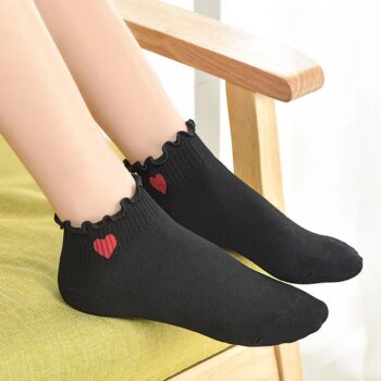 Women’s Cute Crimped Ankle Socks with Stripes, Dots & Hearts