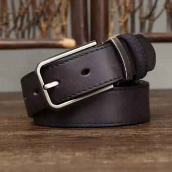 Vintage Men’s Genuine Leather Belt with Copper Pin Buckle