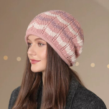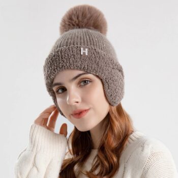Women’s Winter Beanie Hat with Fleece Ear Protection & Fur Pom Pom