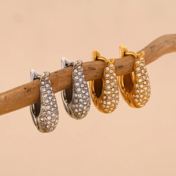 18K Gold Plated U-shaped Rhinestone Hoop Earrings