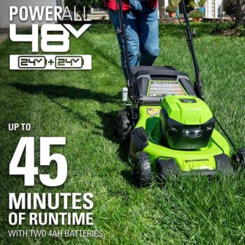 Efficient & Eco-Friendly Cordless Lawn Mower with LED Headlights, Dual Batteries & Rapid Charger