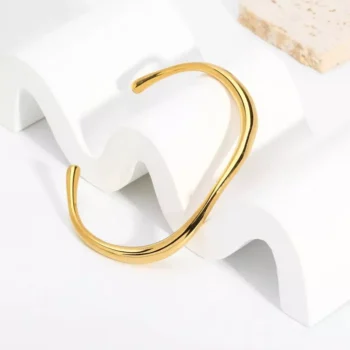 Gold Plated Titanium Cuff Bracelet – Stylish Adjustable Opening Heart Bangle