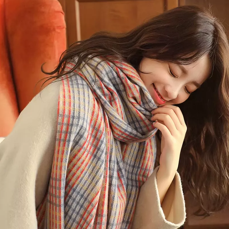 Thick Warm Cashmere-like Shawl with Tassels