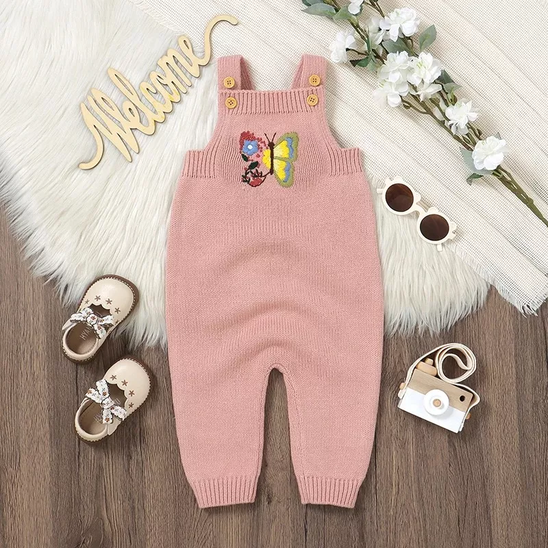 Newborn Baby Sleeveless Romper with Embroidered Butterfly