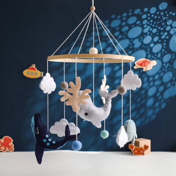 Wooden Baby Crib Mobile with Soft Pink Bear Rattles and Musical Hanging