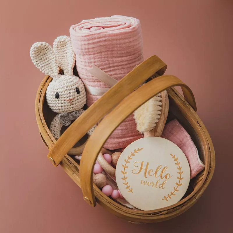 Perfect Baby Gift Set: Towel, Bath Toy, Wooden Rattle & Milestone Cards