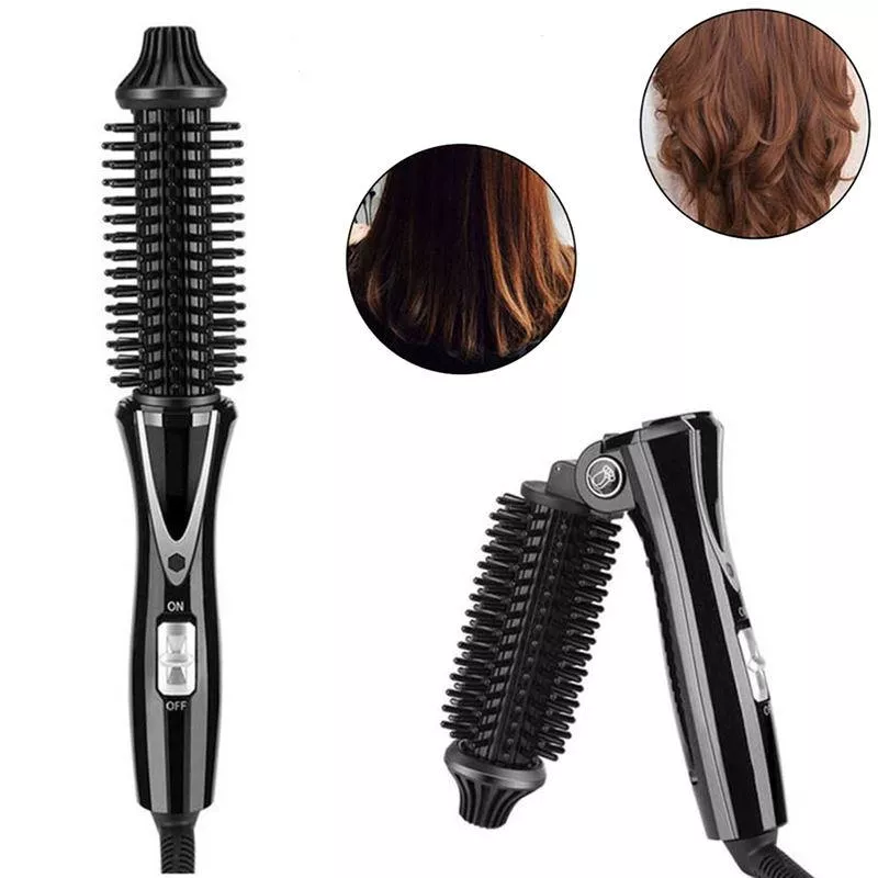 Foldable Hair Curler Brush with Ceramic Barrel and Anti-Scald Design