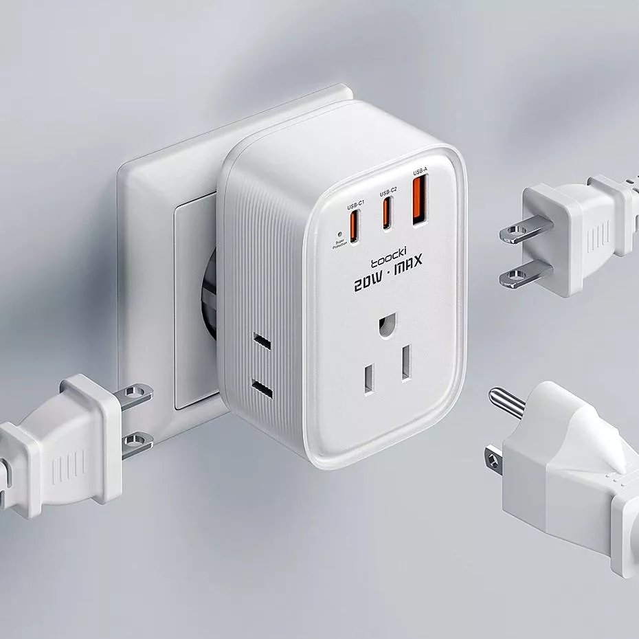 20W GaN Travel Adapter Power Strip with 3 AC Outlets & USB Fast Charging
