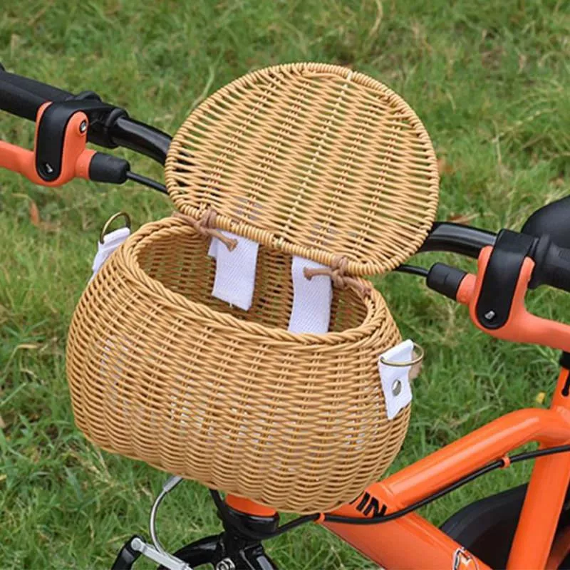 Rattan Woven Bike Basket with Lid